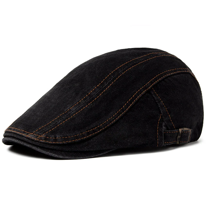 This denim cap combines rugged texture with timeless structure. Made from durable, weighty denim with contrast stitching and a deep indigo wash, it’s designed for everyday wear and pairs easily with jeans, jackets, and casual layers. Finished with a brass buckle adjuster, it delivers a comfortable fit with vintage appeal.
